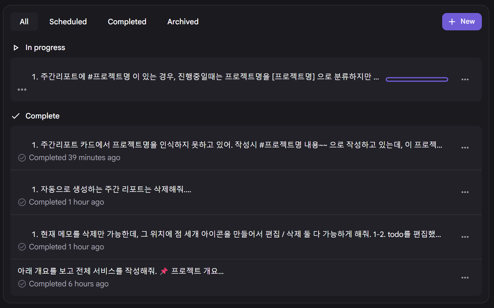 이제 느낌이 어떤가요? 두 서비스를 연동한 결과물로 느껴지지는 않습니다. 제 작업 방식과 사고 흐름에 맞춰 처음부터 구성한 구조였습니다. 메모와 할 일이 나뉘어 있지 않고, 하나의 데이터 안에서 자연스럽게 이어지도록 설계한 시스템이었습니다.